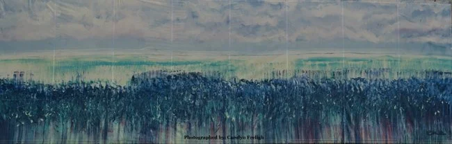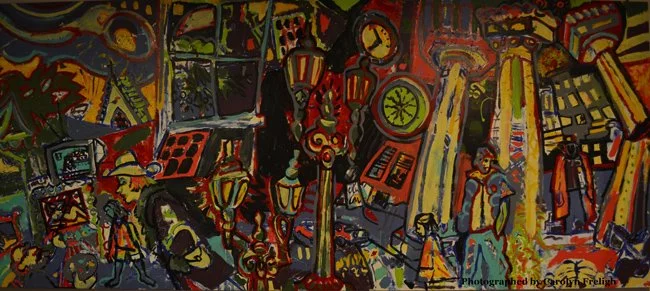 This is a replica of Peter’s painting, showcasing a beautiful field of lilies, and the hope for downtown revitalization. The image was transferred onto a vinyl banner by Mack Studios, and part of the second year of the Downtown BID’s “Music for Murals” event.