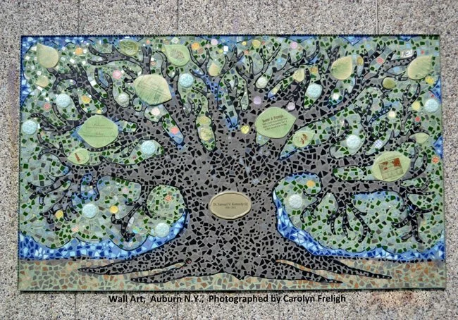 Let us take you through the heart of Downtown Auburn in the Finger Lakes Region of Upstate New York. Here you can discover and learn about the sparkling mosaics, colorful murals and impressive sculptures you come across. Follow your (he)art in Auburn at your convenience by using your handheld device or a print map. If you want to find out more about the background of a particular piece, check out the corresponding artist video or click on its location on the interactive map below. This project was developed in 2015 and continues to grow over a decade later.